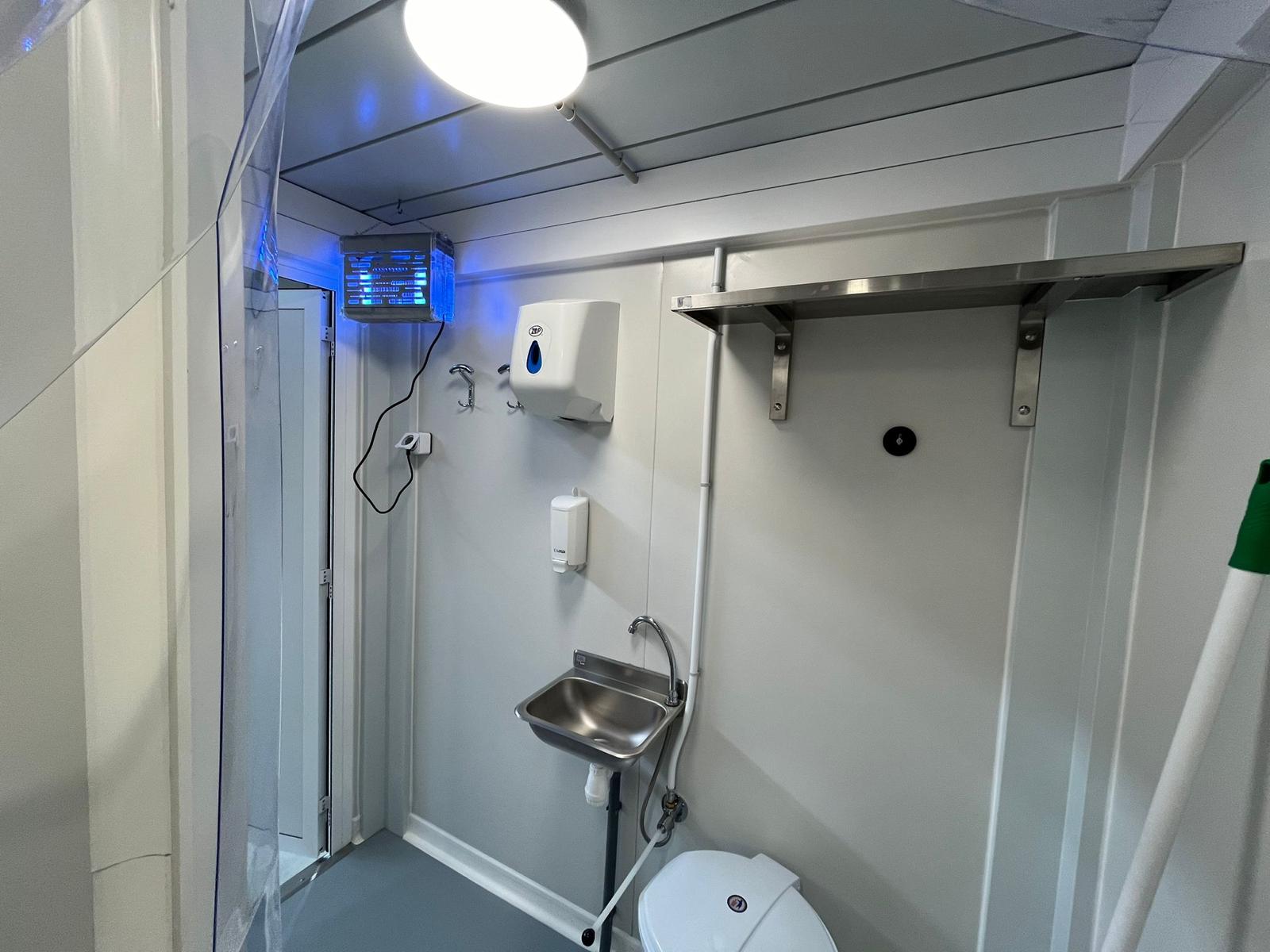Zone 1 : SAS SANITAIRE : zone de transition assurant la séparation entre l’espace sale et l’espace propre, équipée d’un lave-mains.