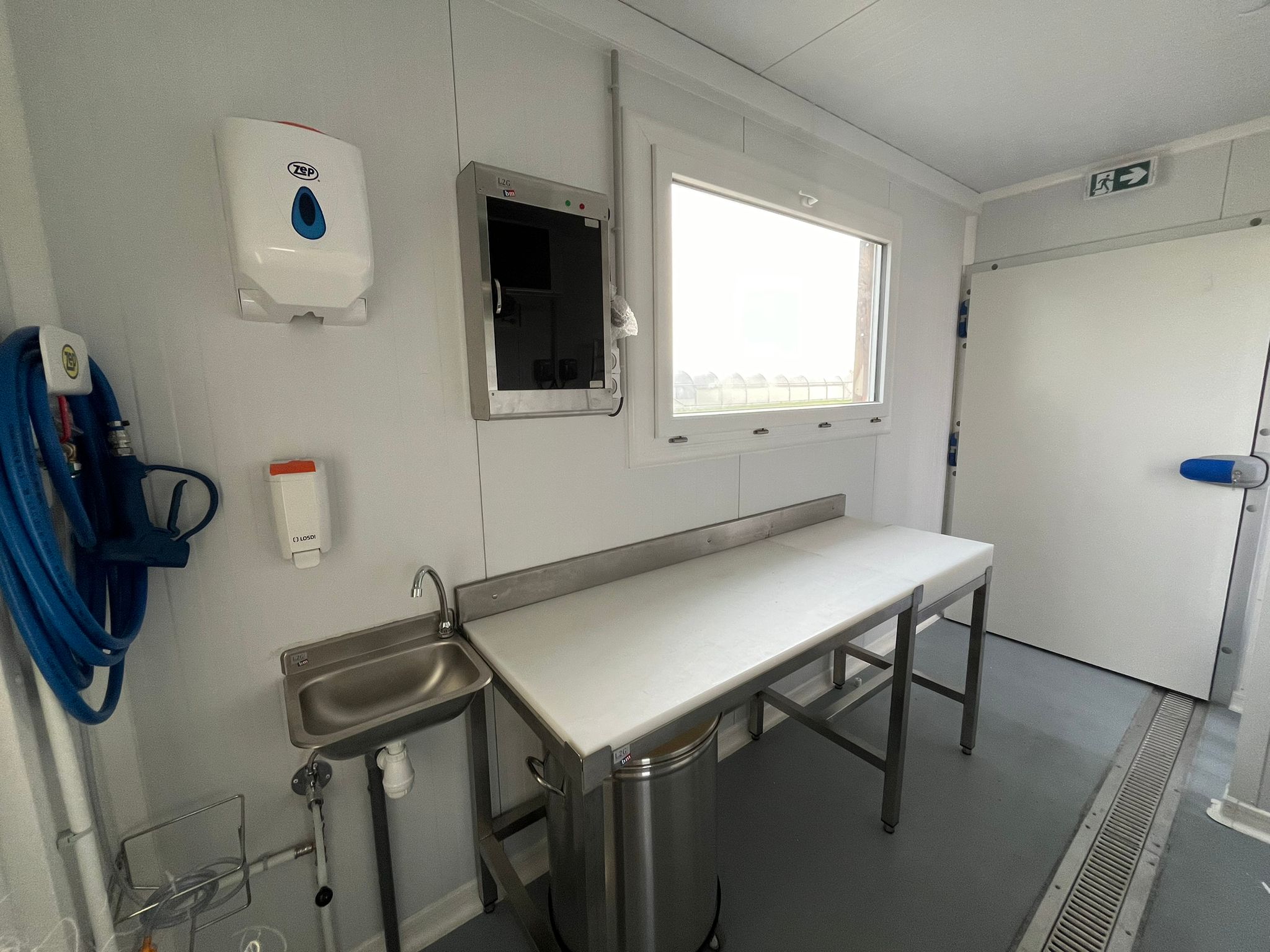 Zone 3 : ÉVISCÉRATION / CONDITIONNEMENT : pour l’éviscération manuelle et, après nettoyage, la découpe et le conditionnement.