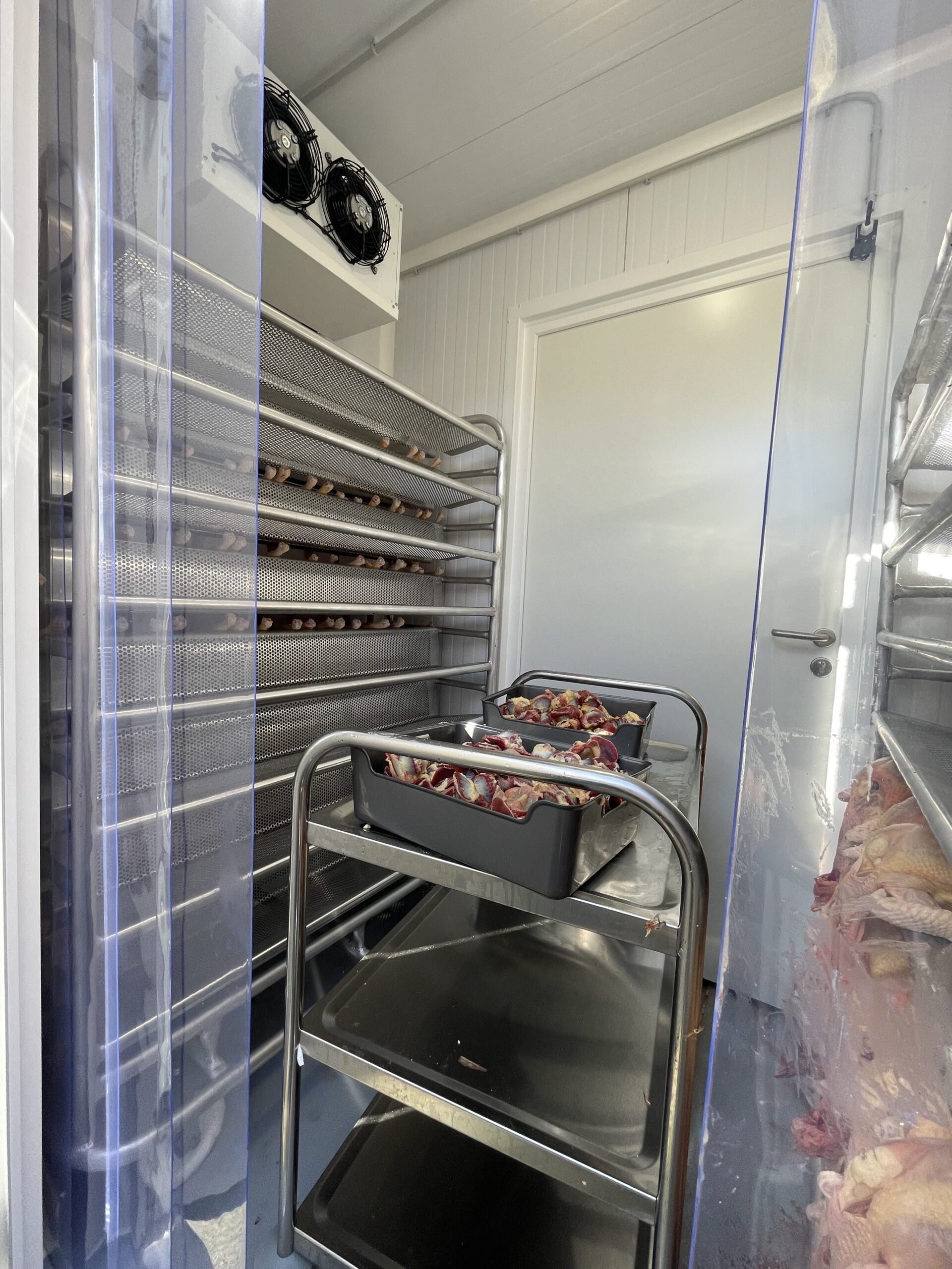 Zone 4 : RESSUAGE : chambre froide permettant le ressuyage de 250 volailles sur chariots.